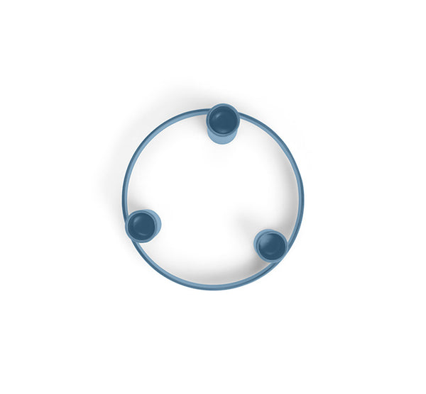A simple, round Candelabra in a charming Pompadour Blue, designed for 3 candles, placing them at varying heights for a dramatic effect on the table.