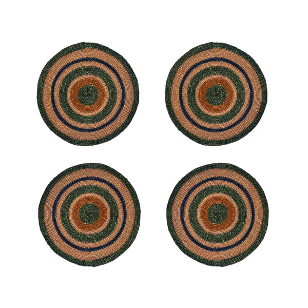 Made from robust seagrass, they lie flat on surfaces and offer a rich texture alongside a splash of colour.