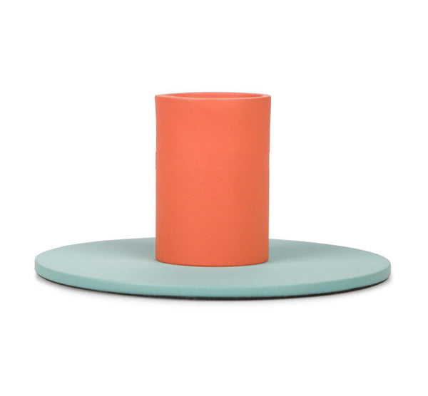 A simple, two-tone candleholder in Opaline & Marigold, two British Colour Standard colours designed to complement our colourful eco candles.