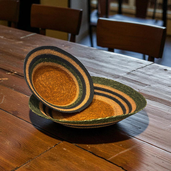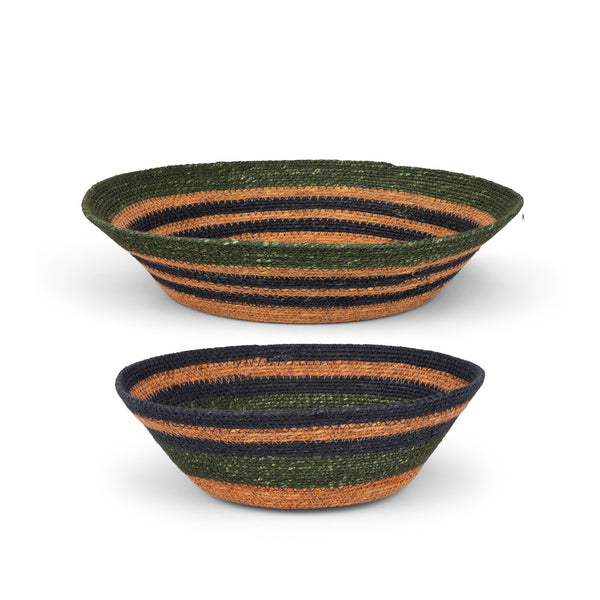 Our stylish Seagrass basket / bowls, are available in a variety of striped colour combinations and 2 sizes. Both the large and small sizes colour coordinate in their two designs, expertly handcrafted to add vibrant hues to your home.