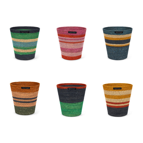 Made in India our waste paper baskets are environmentally friendly and use natural and sustainable materials, add colour easily around the home or home office with our stunning, striped styles!
